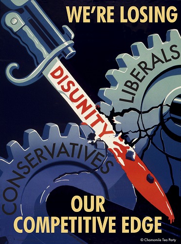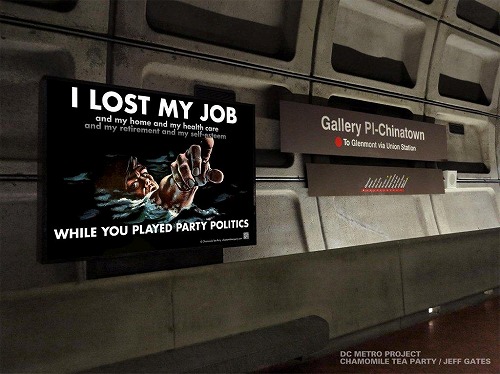 OWSより1年早い2010年に産声を上げたこの団体は、デモで市民の足を妨げるどころかソーシャルネットワーク乱用することもありません。武器のひとつは、グラフィック・デザイナーのジェフ・ゲイツ氏のアートワーク。第二次世界大戦で使用されたプロパガンダをモチーフに描くゲイツ氏の作品は、保守VSリベラルの対立の矛盾を視覚的かつ効果的に突いてきます。