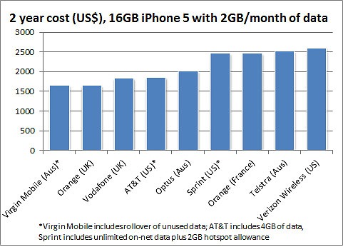 2年間契約ベースでの料金設定、アメリカを含めると私が利用するベライゾンが最悪で2500ドル(19万6250円)以上です。物価高のイメージの強いイギリスに負けてるのが、無念(涙)。