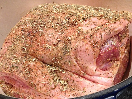 味付けしてマリネする直前の豚さん。15名以上いらっしゃるパーティーではこれくらいの大きさがベスト。
