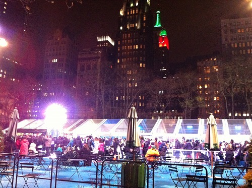 ブライアント・パークでは、ロックフェラーに負けずツリーの前でスケート☆