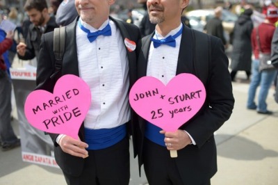 米連邦最高裁判所は13日、同性婚を禁じたカリフォルニア州憲法の修正8号、および1996年に成立した結婚を男女間のみに制限する「結婚防衛法(DOMA)」につき合憲か否かの判決を・・・下しませんでした。多くの同性愛者の方々、そのご家族・友人が注目を集めるなかで、肩透かしを食らわせた格好です。連邦最高裁の非公式ブログであるSCOTUSblogでは遅くとも27-28日までに見解を発表するとのメドを立てていますが、詳細は不明だとのこと。焦らしますねぇ~。