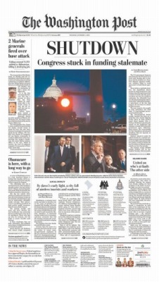 おかげ様で約80万人の連邦政府職員が自宅待機・一時帰休を余儀なくされ、国民生活にも悪影響が及ぶこと必至。幸い1日と2日、ワシントンD.C.にある国立公園ナショナル・モールは閉鎖中のところ、第2次世界大戦記念碑を訪れた80-90歳代の退役軍人の方々のために解放してましたが、特例中の特例ですよ。