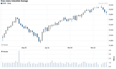 ダウ平均は、政府機関の閉鎖中につけた安値から11月末までに約9%も押し返し過去最高値更新を続けてきました。おかげでウォールストリート・ジャーナル(WSJ)の紙面や経済金融専門チャンネルCNBCでは、「バブル」の文字が躍っていましたっけ。それだけにこの日の下落は、なんだか因縁を感じます。
