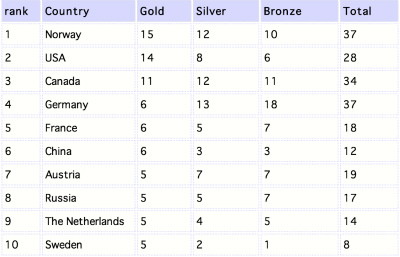 はい、やっぱりメダル総数ではノルウェーが1位なんですね。