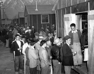 日系アメリカ人、強制収容へ向かう当時の風景。