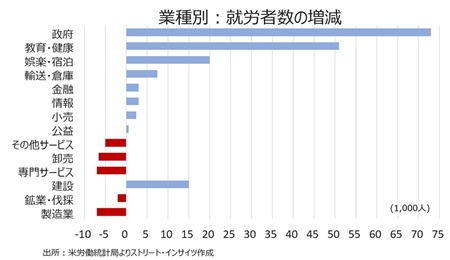 チャート:政府、州・地方政府の増加が連邦政府の減少を完全に打ち消し