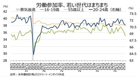 ・16~19歳 35.1%と20年8月以来の低水準、前月は36.2%、24年3月は38.2%と2009年6月以来の高水準