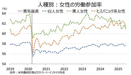 ・ヒスパニック系 61.3%と24年6月以来の低水準、前月は62.2%、24年8月は62.6%と1976年6月からのデータ公表以来で最高