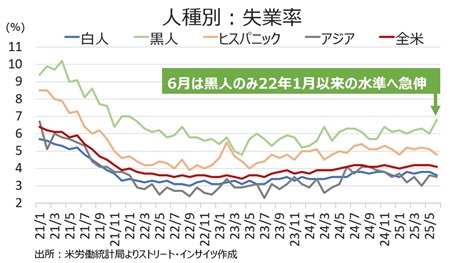 ・黒人 6.8%と22年1月以来の高水準、前月は6.0%、24年11月は6.4%と2022年8月以来の高水準、23年4月は4.8%と過去最低