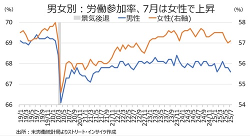 ・25~54歳 89.2%、前月は89.4%、24年7月は90.0%と2009年8月の90%乗せ