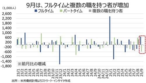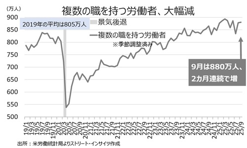 チャート:複数の職を持つ者、9月は2カ月連続で増加
