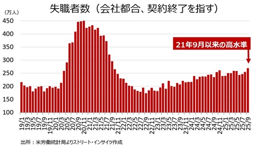 チャート:失職者は3カ月連続で増加した結果、21年9月以来の高水準