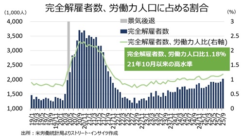 ・完全解雇者の労働力人口の割合が2021年10月以来の高水準
