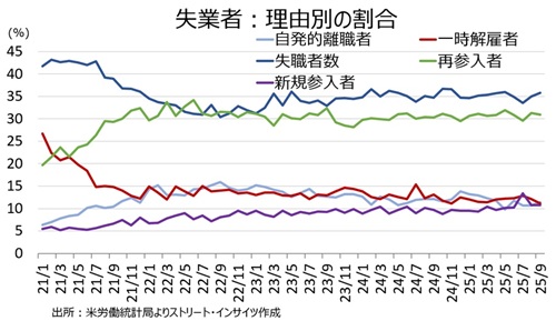 チャート:失業者の割合は失職者が引き続きトップ、再参入者と共に割合上昇