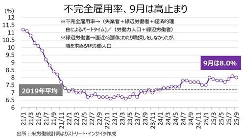 チャート:不完全雇用率、21年10月以来の水準へ上昇