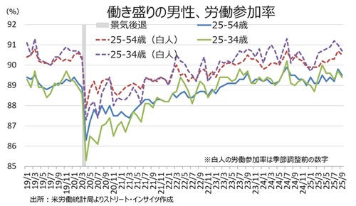 ・25~54歳(白人) 90.5%、前月は90.5%と24年7月に続き2019年3月以来の高水準