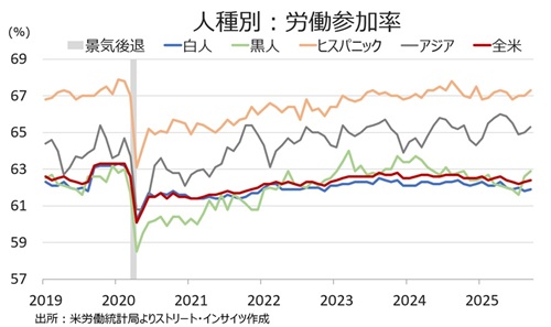 ・ヒスパニック系 62.5%と5カ月ぶりの水準を回復、前月は61.9%、24年8月は62.6%と1976年6月からのデータ公表以来で最高