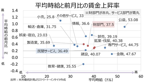 ①平均時給は前月比で市場予想超えは13業種のうち11業種と、前月の5業種から増加。賃金の伸びは前月比で底堅さを示す。