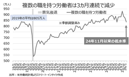 チャート:複数の職を持つ者、2月は3カ月連続で減少