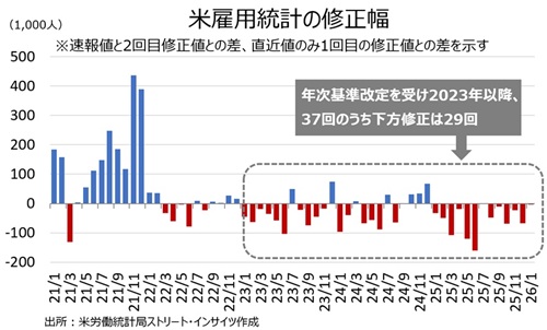 ・12月 4.8万人増→1.7万人減、6.5万人の下方修正